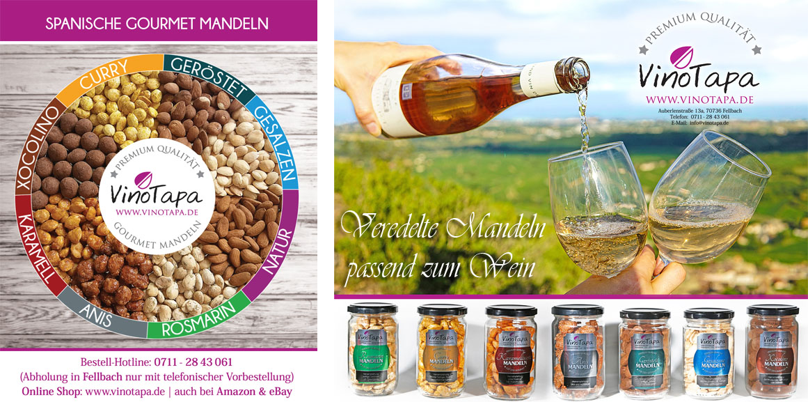 Unsere Curry Mandeln vereinen knackige Mandeln mit einer exotischen Gewürzmischung aus Kurkuma, Koriander, Fenchel, Kümmel, Cayenne Pfeffer, Knoblauch und Lorbeer. Schonend geröstet entstehen Mandeln mit einem aromatischen, würzig-exotischen Geschmack.Perfekt für zwischendurch, zu Tapas oder als ausgefallener Snack: Die Curry Mandeln überraschen durch ihre feine Würze. Besonders empfehlenswert in Kombination mit leichtem Trollinger, Riesling oder Gewürztraminer, die die würzigen Aromen optimal unterstützen.Zutaten: Spanische Premium Mandeln, Curry (Kurkuma, Koriander, Fenchel, Kümmel, Cayenne Pfeffer, Knoblauch, Lorbeer), Salz, Zucker.Nährwertangaben pro 100 g| MengeEnergiewert667 kcal / 2623 kJFett55,6 gdavon gesättigte Fettsäuren5,2 gKohlenhydrate15,1 gdavon Zucker5,9 gBallaststoffe14,3 gEiweiß (Proteine)23,7 gSalz0,4 g